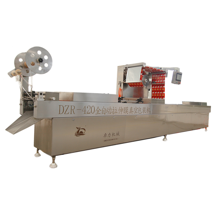 2)全自動拉伸膜真空包裝機當按·自動”進入·自動模式”后,看到“自動模式”畫面有進行各種自動操作的觸摸鍵。…手動”和·菜單,鍵用于切換畫面,按·菜單,鍵返回至初始畫面;按·手動”鍵進入·手動模式,畫面。…加熱,鍵為成型室與真空室加熱板進行加熱的開關觸摸鍵。按一下開關閉合,再按一下則斷開,再按一下又閉合,按鍵時顏色翻轉,說明觸摸有效。如此反復交替進行,控制PLC輸出開關動作。“真空泵,鍵用于控制PLC啟動真空泵。…送氣,鍵為系統壓縮空氣開關。…循環”鍵為自動包裝機進入自動操作的觸摸鍵,但它與其它觸摸鍵的區別之處在于您只有長按1秒以上時間,它才能使機器進入自動運行狀態,這一點是基于防止您的誤操作
